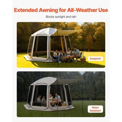 покрытие > məişət texnikası > 10-12 Person VEVOR Screen House Tent | 12x 11 ft Pop Up Screen Tent with Extended Awning, Portable Screened in Canopy with Carry , Netting Sides, for Patio, Backyard, and Outdoor Activities, Beige