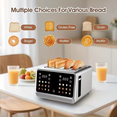 покрытие > məişət texnikası > [Smart Toaster | Touch Screen] Smart Extra Wide Slot Toaster | Touch Screen LCD Display Stainless Steel Digital Timer | 24 Slices 6 Bread Types 6 Browning Settings w/ Bagel Cancel & Defrost Function